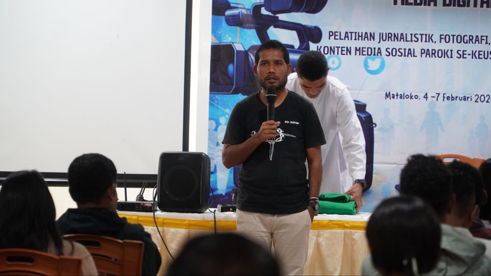 Dari pagi hingga sore, aula Rusun Seminari Mataloko tak pernah kehilangan denyut kehidupan. Kamera menyala, laptop terbuka, diskusi mengalir hangat. Para peserta dibekali pemahaman tentang video grafis, foto grafis, penulisan feature, serta pengelolaan konten media sosial sebagai sarana pewartaan Gereja di era digital.