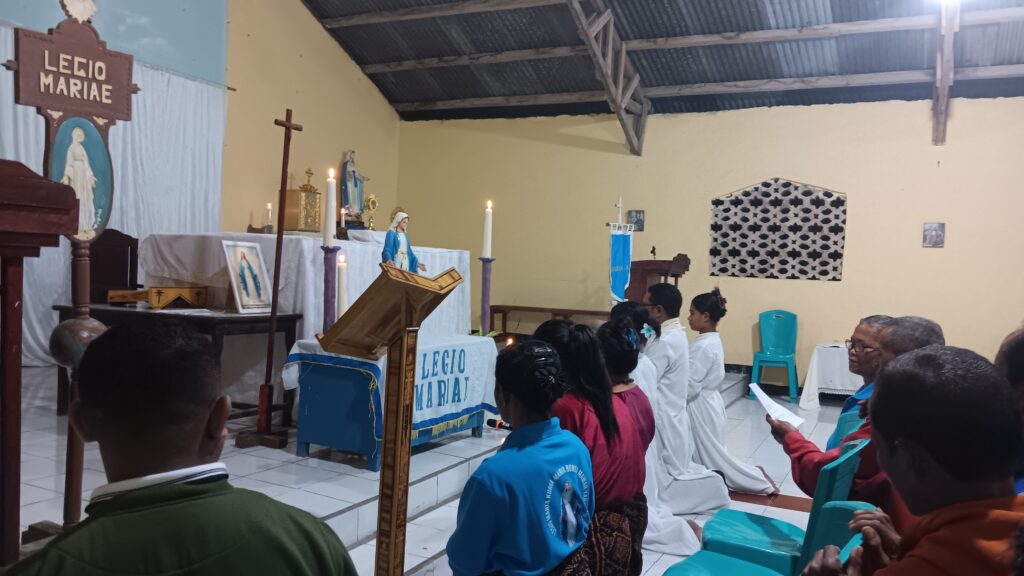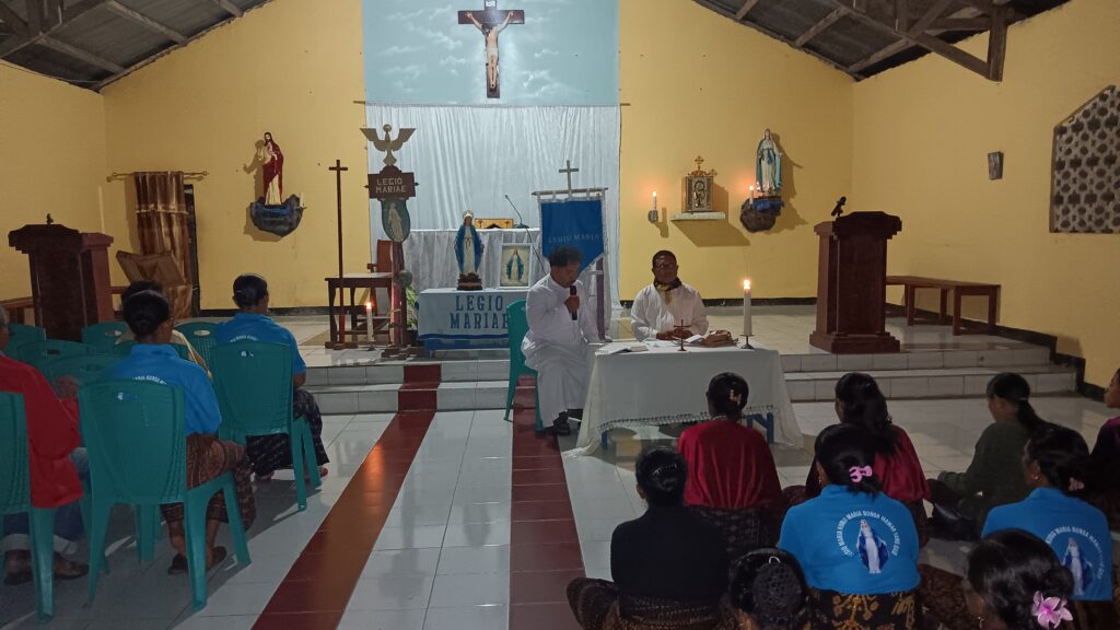 Ende, Wologai – Dalam semangat sukacita Hari Raya Kabar Sukacita yang dirayakan setiap tanggal 25 Maret, umat Allah secara khusus anggota Legio Maria di wilayah paroki St. Yohanes Maria Vianney Pemo diajak untuk kembali merenungkan panggilan iman mereka melalui kegiatan rekoleksi  iman yang mengangkat tema: “Setia pada Kristus bersama Bunda Maria.”